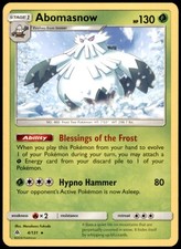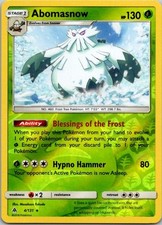 This printing is a standard rare, pulled roughly 1 per pack (the card is labeled "Rare" on the checklist). Abomasnow has been printed 9 times across different sets - earlier or limited printings often command premiums even when the rarity tier is identical.