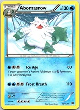 This printing is a standard rare, pulled roughly 1 per pack (the card is labeled "Rare" on the checklist). Abomasnow has been printed 9 times across different sets - earlier or limited printings often command premiums even when the rarity tier is identical.