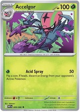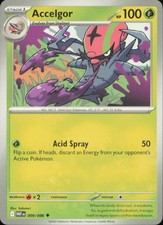 This printing is an uncommon card, pulled roughly 3 per pack (the card is labeled "Uncommon" on the checklist). Accelgor has been printed 9 times across different sets - earlier or limited printings often command premiums even when the rarity tier is identical.
