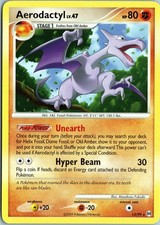 This printing is a standard rare, pulled roughly 1 per pack (the card is labeled "Rare" on the checklist). Aerodactyl has been printed 9 times across different sets - earlier or limited printings often command premiums even when the rarity tier is identical.