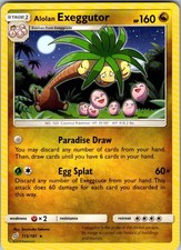 This printing is a standard rare, pulled roughly 1 per pack (the card is labeled "Rare" on the checklist). Alolan Exeggutor has been printed 6 times across different sets - earlier or limited printings often command premiums even when the rarity tier is identical.