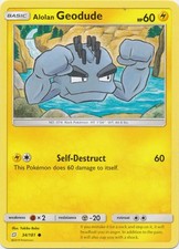 This printing is a common card, the base-tier pull (the card is labeled "Common" on the checklist). Alolan Geodude has been printed 5 times across different sets - earlier or limited printings often command premiums even when the rarity tier is identical.