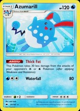 This printing is a standard rare, pulled roughly 1 per pack (the card is labeled "Rare" on the checklist). Azumarill has been printed 9 times across different sets - earlier or limited printings often command premiums even when the rarity tier is identical.