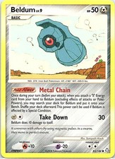 This printing is a common card, the base-tier pull (the card is labeled "Common" on the checklist). Beldum has been printed 9 times across different sets - earlier or limited printings often command premiums even when the rarity tier is identical.
