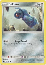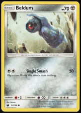 This printing is a common card, the base-tier pull (the card is labeled "Common" on the checklist). Beldum has been printed 9 times across different sets - earlier or limited printings often command premiums even when the rarity tier is identical.