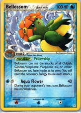 Bellossom δ is a Rare Pokémon card from the Holon Phantoms Pokémon TCG set, released 2003, illustrated by Kagemaru Himeno. It sits at card number 19 in the Holon Phantoms checklist, classified as a Water-type Pokémon with 100 HP and the Stage 2 subtype.