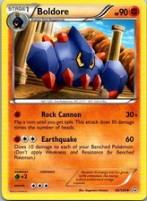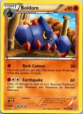 Boldore is a Uncommon Pokémon card from the Dragons Exalted Pokémon TCG set, released 2011, illustrated by Kagemaru Himeno. It sits at card number 66 in the Dragons Exalted checklist, classified as a Fighting-type Pokémon with 90 HP and the Stage 1 subtype.