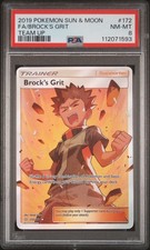 Brock's Grit is a Rare Ultra Trainer card from the Team Up Pokémon TCG set, released 2018, illustrated by Naoki Saito. It sits at card number 172 in the Team Up checklist and the Supporter subtype.