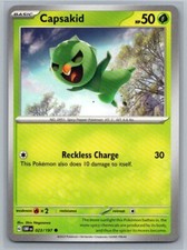 This printing is a common card, the base-tier pull (the card is labeled "Common" on the checklist). Capsakid has been printed 6 times across different sets - earlier or limited printings often command premiums even when the rarity tier is identical.