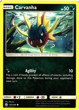 Carvanha has been printed 9 times across different sets. The variant you're looking at (#132 in Cosmic Eclipse) is one of them - see every other printing further down to compare art, rarity, and current market price across all versions.
