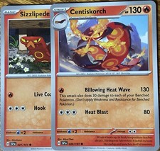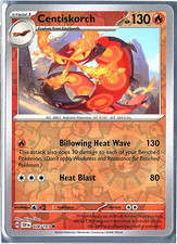 This printing is a common card, the base-tier pull (the card is labeled "Common" on the checklist). Centiskorch has been printed 9 times across different sets - earlier or limited printings often command premiums even when the rarity tier is identical.