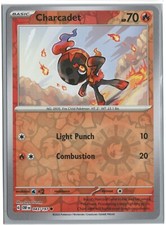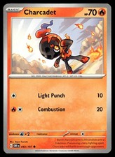 This printing is a common card, the base-tier pull (the card is labeled "Common" on the checklist). Charcadet has been printed 9 times across different sets - earlier or limited printings often command premiums even when the rarity tier is identical.