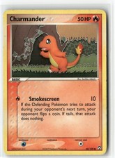Charmander is a Common Pokémon card from the Power Keepers Pokémon TCG set, released 2003, illustrated by Sachiko Adachi. It sits at card number 48 in the Power Keepers checklist, classified as a Fire-type Pokémon with 50 HP and the Basic subtype.