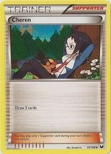 Cheren is a Uncommon Trainer card from the Dark Explorers Pokémon TCG set, released 2011, illustrated by Kanako Eo. It sits at card number 91 in the Dark Explorers checklist and the Supporter subtype.