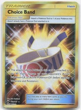 This printing is a secret rare - numbered above the printed set total, notably short-printed (the card is labeled "Rare Secret" on the checklist). Choice Band has been printed 3 times across different sets - earlier or limited printings often command premiums even when the rarity tier is identical.