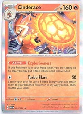 This printing is a standard rare, pulled roughly 1 per pack (the card is labeled "Rare" on the checklist). Cinderace has been printed 8 times across different sets - earlier or limited printings often command premiums even when the rarity tier is identical.