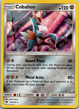 Cobalion is a Rare Holo Pokémon card from the Lost Thunder Pokémon TCG set, released 2018, illustrated by Kouki Saitou. It sits at card number 129 in the Lost Thunder checklist, classified as a Metal-type Pokémon with 120 HP and the Basic subtype.