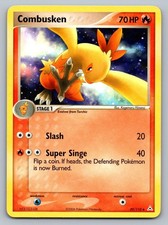Combusken is a Uncommon Pokémon card from the Holon Phantoms Pokémon TCG set, released 2003, illustrated by Kagemaru Himeno. It sits at card number 39 in the Holon Phantoms checklist, classified as a Fire-type Pokémon with 70 HP and the Stage 1 subtype.