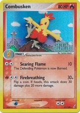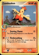 Combusken is a Uncommon Pokémon card from the Crystal Guardians Pokémon TCG set, released 2003, illustrated by Sachiko Adachi. It sits at card number 31 in the Crystal Guardians checklist, classified as a Fire-type Pokémon with 80 HP and the Stage 1 subtype.
