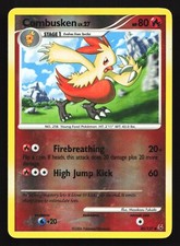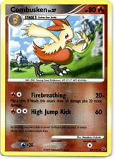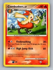 Combusken is a Uncommon Pokémon card from the Platinum Pokémon TCG set, released 2009, illustrated by Masakazu Fukuda. It sits at card number 45 in the Platinum checklist, classified as a Fire-type Pokémon with 80 HP and the Stage 1 subtype.
