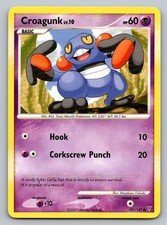 This printing is a common card, the base-tier pull (the card is labeled "Common" on the checklist). Croagunk has been printed 9 times across different sets - earlier or limited printings often command premiums even when the rarity tier is identical.