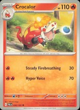 Crocalor is a Uncommon Pokémon card from the Paldea Evolved Pokémon TCG set, released 2023, illustrated by Hitoshi Ariga. It sits at card number 36 in the Paldea Evolved checklist, classified as a Fire-type Pokémon with 110 HP and the Stage 1 subtype.