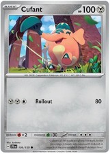 Cufant is a Common Pokémon card from the Journey Together Pokémon TCG set, released 2026, illustrated by kodama. It sits at card number 109 in the Journey Together checklist, classified as a Metal-type Pokémon with 100 HP and the Basic subtype.