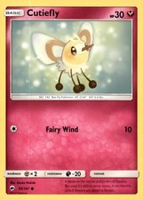 This printing is a common card, the base-tier pull (the card is labeled "Common" on the checklist). Cutiefly has been printed 8 times across different sets - earlier or limited printings often command premiums even when the rarity tier is identical.