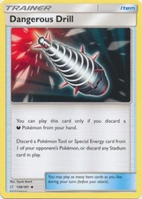 Dangerous Drill is a Uncommon Trainer card from the Team Up Pokémon TCG set, released 2018, illustrated by Toyste Beach. It sits at card number 138 in the Team Up checklist and the Item subtype.