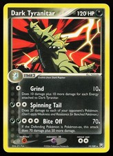 This printing is a standard rare, pulled roughly 1 per pack (the card is labeled "Rare" on the checklist). Dark Tyranitar has been printed 3 times across different sets - earlier or limited printings often command premiums even when the rarity tier is identical.