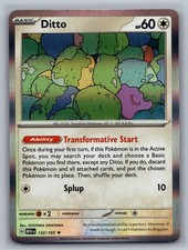 This printing is a standard rare, pulled roughly 1 per pack (the card is labeled "Rare" on the checklist). Ditto has been printed 9 times across different sets - earlier or limited printings often command premiums even when the rarity tier is identical.
