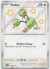 Doduo has been printed 9 times across different sets. The variant you're looking at (#199 in Paldean Fates) is one of them - see every other printing further down to compare art, rarity, and current market price across all versions.