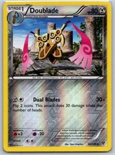 Doublade is a Uncommon Pokémon card from the XY Pokémon TCG set, released 2014, illustrated by 5ban Graphics. It sits at card number 84 in the XY checklist, classified as a Metal-type Pokémon with 80 HP and the Stage 1 subtype.