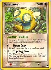 This printing is an uncommon card, pulled roughly 3 per pack (the card is labeled "Uncommon" on the checklist). Dunsparce has been printed 9 times across different sets - earlier or limited printings often command premiums even when the rarity tier is identical.