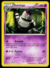 Dusclops is a Uncommon Pokémon card from the Boundaries Crossed Pokémon TCG set, released 2011, illustrated by Akira Komayama. It sits at card number 62 in the Boundaries Crossed checklist, classified as a Psychic-type Pokémon with 80 HP and the Stage 1 subtype.