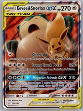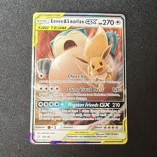 This printing is a standard holofoil rare - roughly 1 per booster pack in modern sets (the card is labeled "Rare Holo GX" on the checklist). Eevee & Snorlax-GX has been printed 4 times across different sets - earlier or limited printings often command premiums even when the rarity tier is identical.