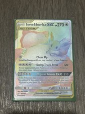 This printing is a rainbow rare variant, one of the shortest-printed tiers in modern sets (the card is labeled "Rare Rainbow" on the checklist). Eevee & Snorlax-GX has been printed 4 times across different sets - earlier or limited printings often command premiums even when the rarity tier is identical.