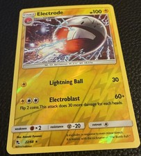 Electrode is a Rare Pokémon card from the Hidden Fates Pokémon TCG set, released 2019, illustrated by Anesaki Dynamic. It sits at card number 22 in the Hidden Fates checklist, classified as a Lightning-type Pokémon with 100 HP and the Stage 1 subtype.