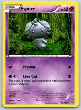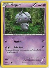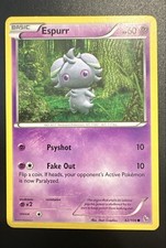 This printing is a common card, the base-tier pull (the card is labeled "Common" on the checklist). Espurr has been printed 9 times across different sets - earlier or limited printings often command premiums even when the rarity tier is identical.