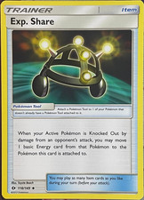 Exp. Share has been printed 7 times across different sets. The variant you're looking at (#118 in Sun & Moon) is one of them - see every other printing further down to compare art, rarity, and current market price across all versions.