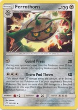 Ferrothorn is a Rare Pokémon card from the Team Up Pokémon TCG set, released 2018, illustrated by Hasuno. It sits at card number 103 in the Team Up checklist, classified as a Metal-type Pokémon with 120 HP and the Stage 1 subtype.