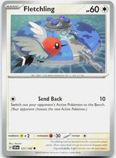 Fletchling is a Common Pokémon card from the Stellar Crown Pokémon TCG set, released 2025. It sits at card number 121 in the Stellar Crown checklist, classified as a Colorless-type Pokémon with 60 HP and the Basic subtype.