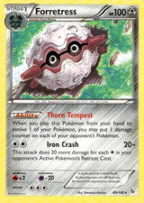 Forretress is a Rare Pokémon card from the Flashfire Pokémon TCG set, released 2014, illustrated by Tomokazu Komiya. It sits at card number 60 in the Flashfire checklist, classified as a Metal-type Pokémon with 100 HP and the Stage 1 subtype.