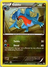 Gabite is a Uncommon Pokémon card from the Dragons Exalted Pokémon TCG set, released 2011, illustrated by Mitsuhiro Arita. It sits at card number 88 in the Dragons Exalted checklist, classified as a Dragon-type Pokémon with 80 HP and the Stage 1 subtype.