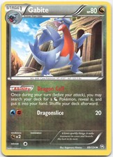Gabite is a Uncommon Pokémon card from the Dragons Exalted Pokémon TCG set, released 2011, illustrated by Kagemaru Himeno. It sits at card number 89 in the Dragons Exalted checklist, classified as a Dragon-type Pokémon with 80 HP and the Stage 1 subtype.