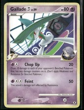 Gallade E4 is a Rare Pokémon card from the Rising Rivals Pokémon TCG set, released 2009, illustrated by Mitsuhiro Arita. It sits at card number 20 in the Rising Rivals checklist, classified as a Psychic-type Pokémon with 80 HP and the Basic, SP subtypes.