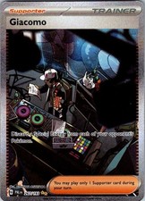 Giacomo has been printed 4 times across different sets. The variant you're looking at (#267 in Paldea Evolved) is one of them - see every other printing further down to compare art, rarity, and current market price across all versions.