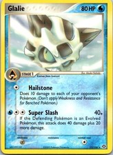 Glalie is a Rare Pokémon card from the Emerald Pokémon TCG set, released 2003, illustrated by Atsuko Nishida. It sits at card number 13 in the Emerald checklist, classified as a Water-type Pokémon with 80 HP and the Stage 1 subtype.