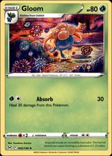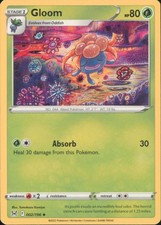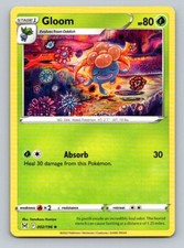 Gloom is a Uncommon Pokémon card from the Lost Origin Pokémon TCG set, released 2022, illustrated by Tomokazu Komiya. It sits at card number 2 in the Lost Origin checklist, classified as a Grass-type Pokémon with 80 HP and the Stage 1 subtype.