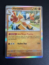 This printing is a standard rare, pulled roughly 1 per pack (the card is labeled "Rare" on the checklist). Hariyama has been printed 9 times across different sets - earlier or limited printings often command premiums even when the rarity tier is identical.